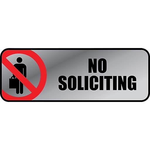 Cosco Brushed Metal No Soliciting Sign 3 x 9 by Office ... from s7d1.scene7.com Please visit my shop for other color options. This item will come in handy for your office or business. Hang this no soliciting metal sign outside of your home or on your door to keep unwanted solicitors at bay. Besides, this no soliciting sign is printed with long lasting ink and special uv coating to protect it in harsh weather. Made from composite metal and a fade resistant print, this no soliciting door sign is extremely durable, completely weather proof and suitable for hanging outdoors. The crime of solicitation to commit a crime occurs when a person encourages, solicits, requests, commands. Top picks related reviews newsletter. Put up this no soliciting sign, a free printable.